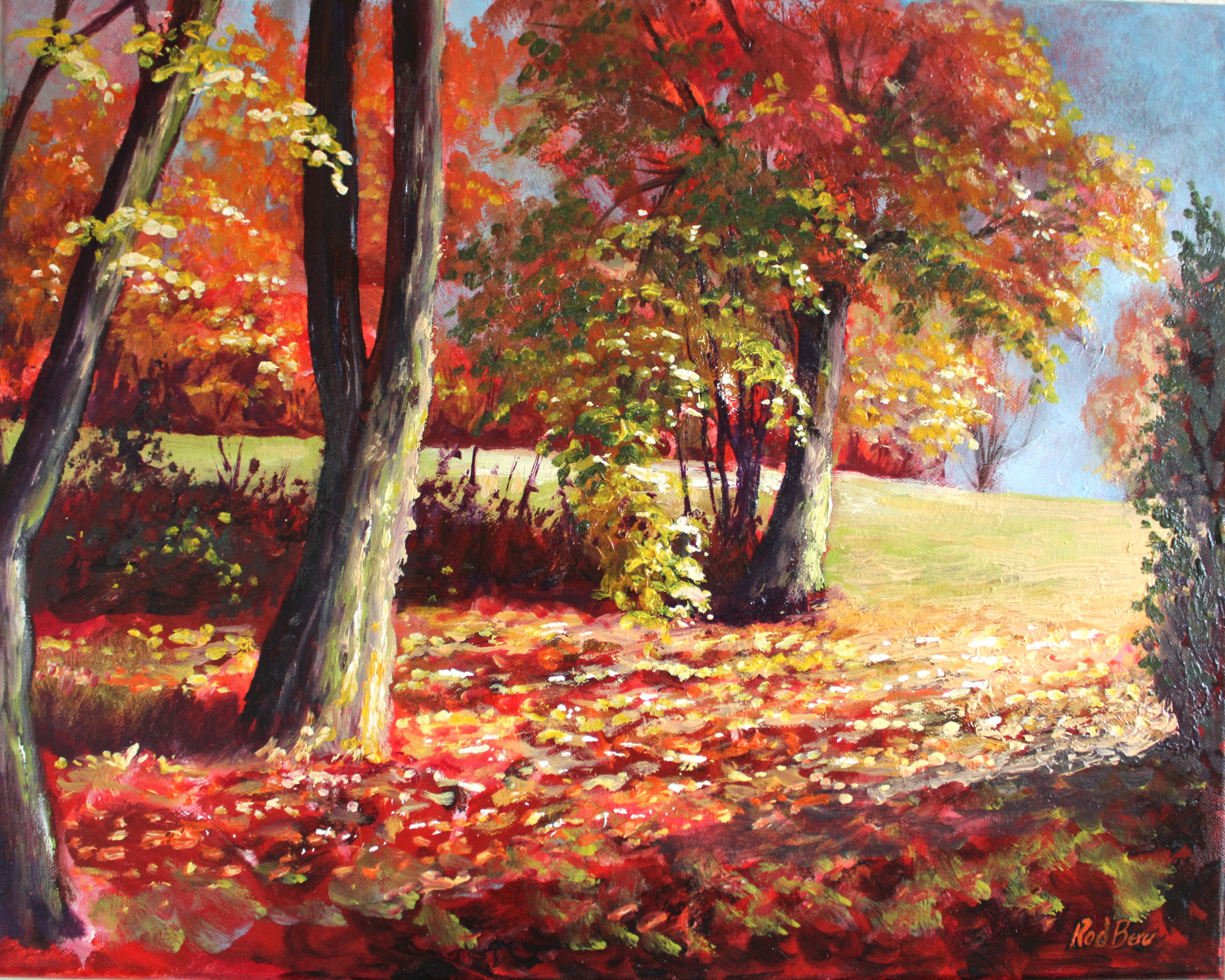 Sunlit Autumn Carpet SOLD 50 x 40 x 2cm £225 A brilliant carpet of fallen leaves is lit by the sun as one enters the field.