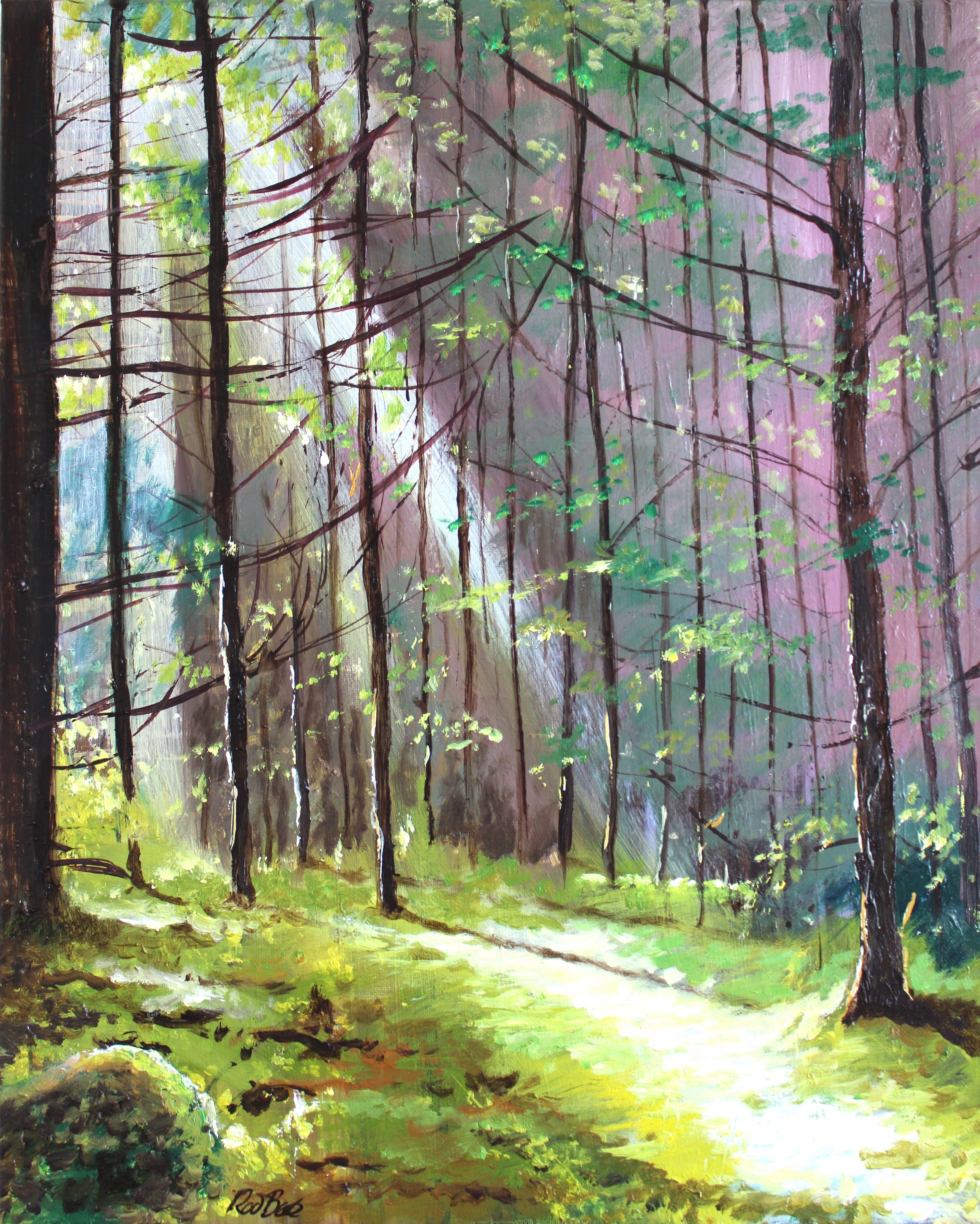 Sunlight Through the Woodland 40 x 50cm £295The bright Sun low in the sky floods the woodland with a spectrum of colours