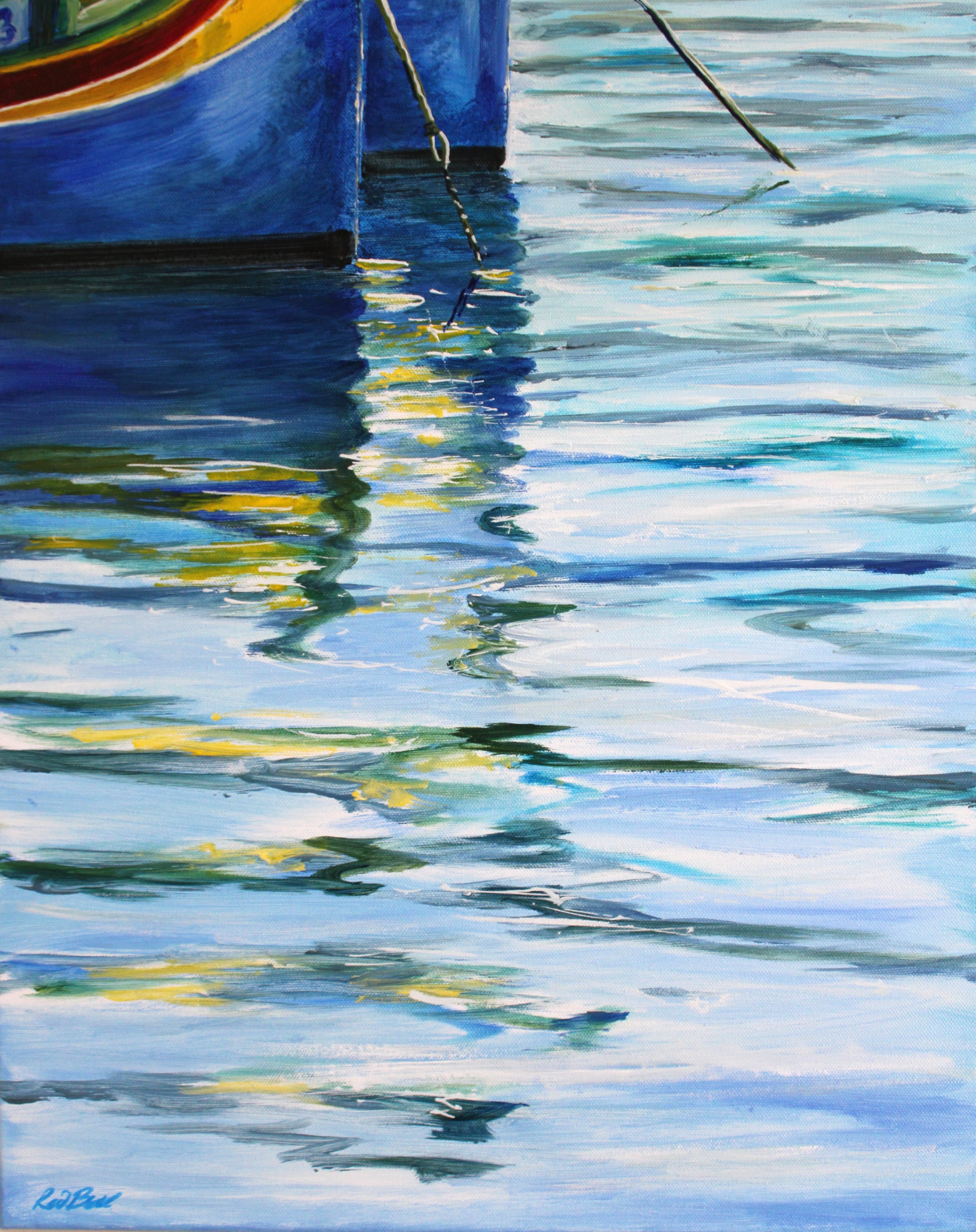 Harbour Reflections 40 x 50 cm £250 Memories of the harbours at Malta, sitting in the sun and marvelling at the reflections in the water